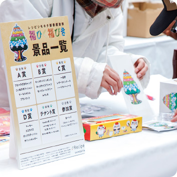 「いぬ年」の今年は、ゴールドのポスターでちょっと豪華な演出。いつにも増してバラエティ豊かな景品がもらえる福引きも、大人から子供たちまで大盛況でした。