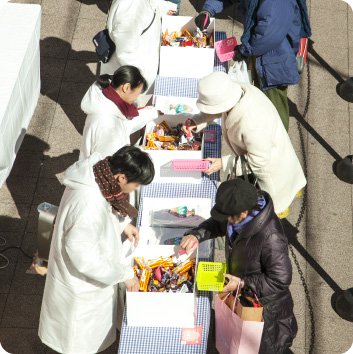 肌寒い冬の日にもかかわらず、参加券を握りしめた多くの方がチョコすくいに挑戦!